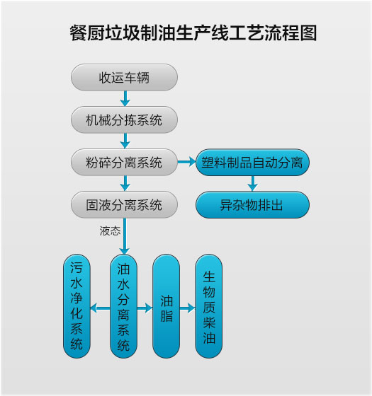 餐廚垃圾生物柴油生產線工藝流程圖: