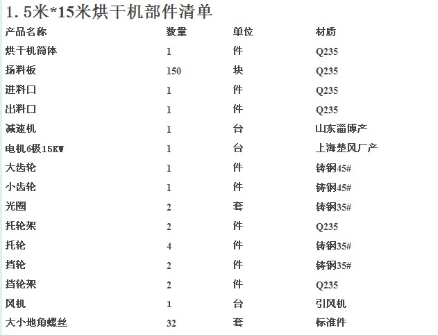 天然氣轉筒烘干機工藝流程及明細表資料僅供參考,文章來源:www.meilongzhen.net,轉載請注明出處。