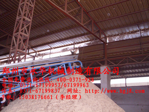 圖一:本圖是經(jīng)過裝載機(jī)將濕鋸末鏟入料斗進(jìn)行上料,本公司設(shè)計(jì)的料斗出料口處裝有自動(dòng)控料器,有效的解決了進(jìn)料不均勻的現(xiàn)象。